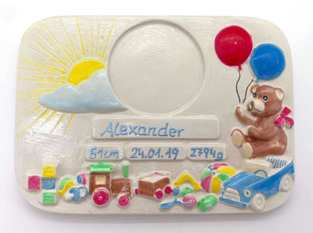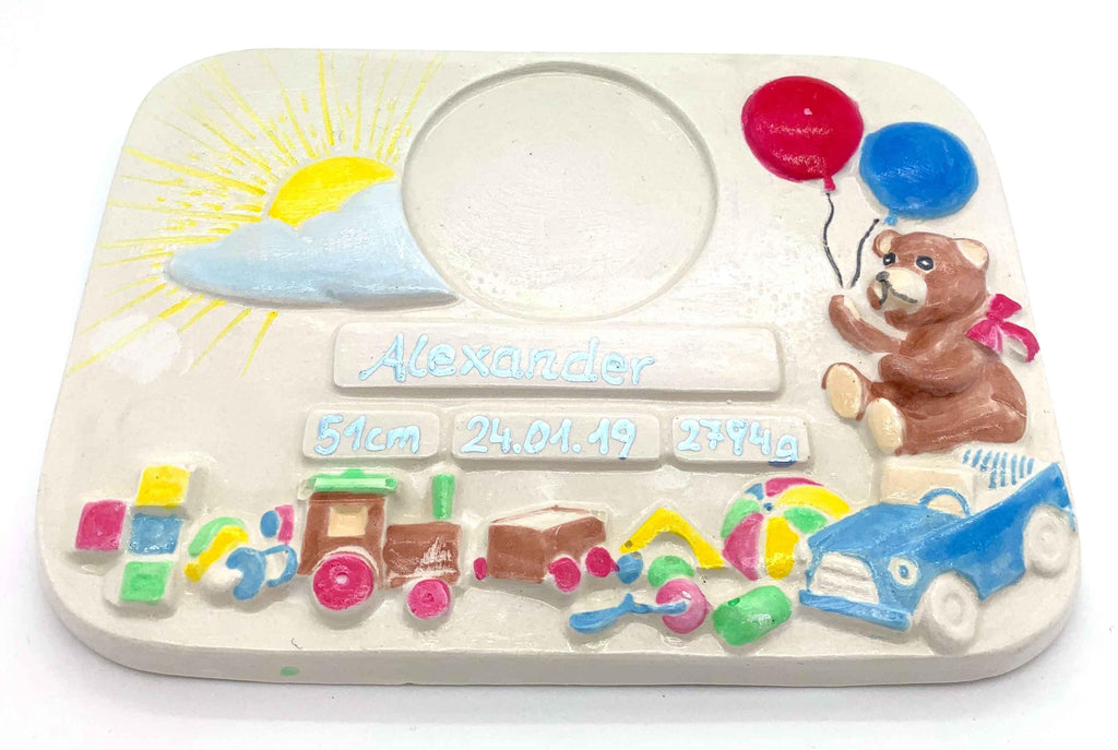 Die Geburts- und Taufteller sind alle von Hand gefertigte Unikate, die den Eltern große Freude bereiten werden. Denn auf dem Geburtsteller werden alle wichtigen Daten festgehalten. So schenken Sie zur Geburt ein außergewöhnliches Geschenk. Bitte beachte die längere Lieferzeit von ca. 1 Woche.