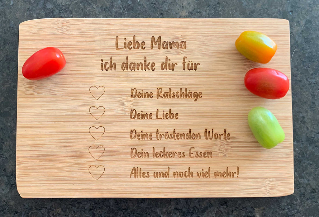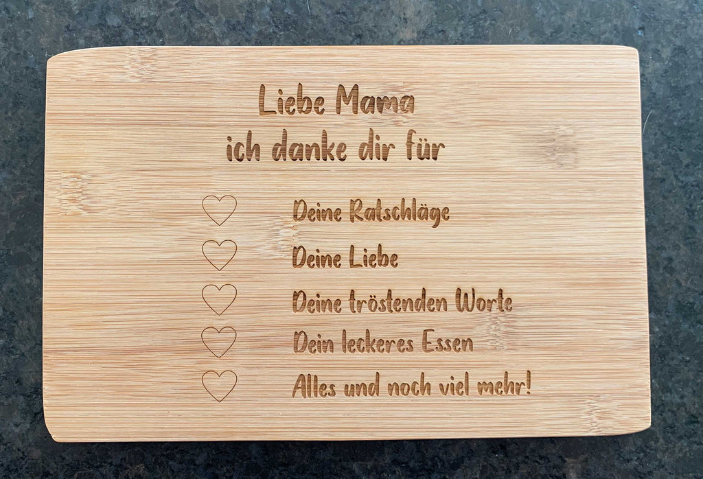 Das Bambus Brett hat eine Größe von 16cm x 25cm.