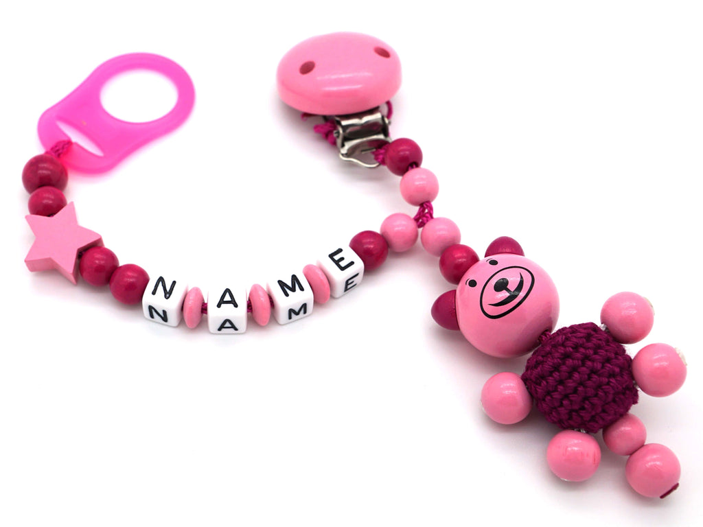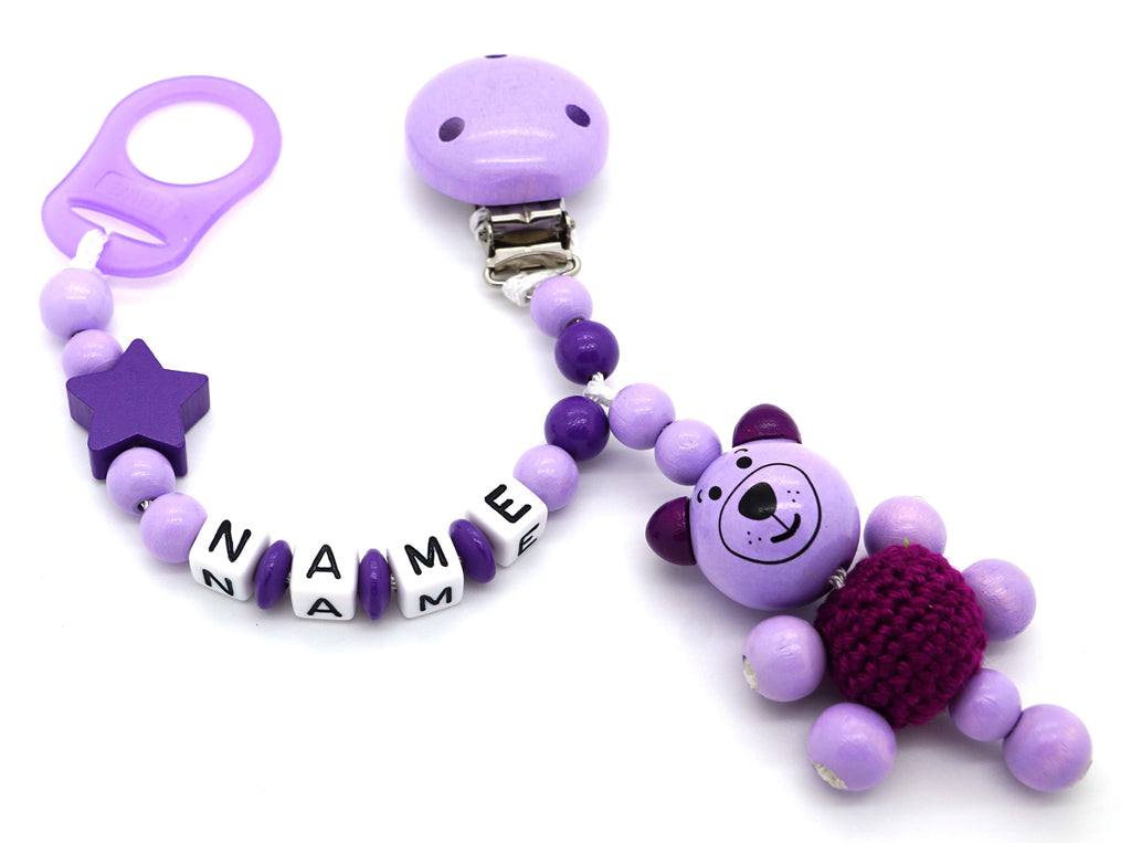 Der süße 3D Bär ist auch mit Häkelperle erhältlich. Sichert euch eure Schnullerktte mit Name.