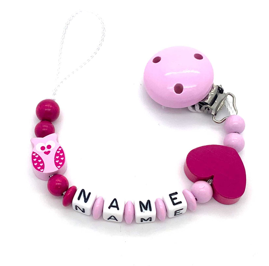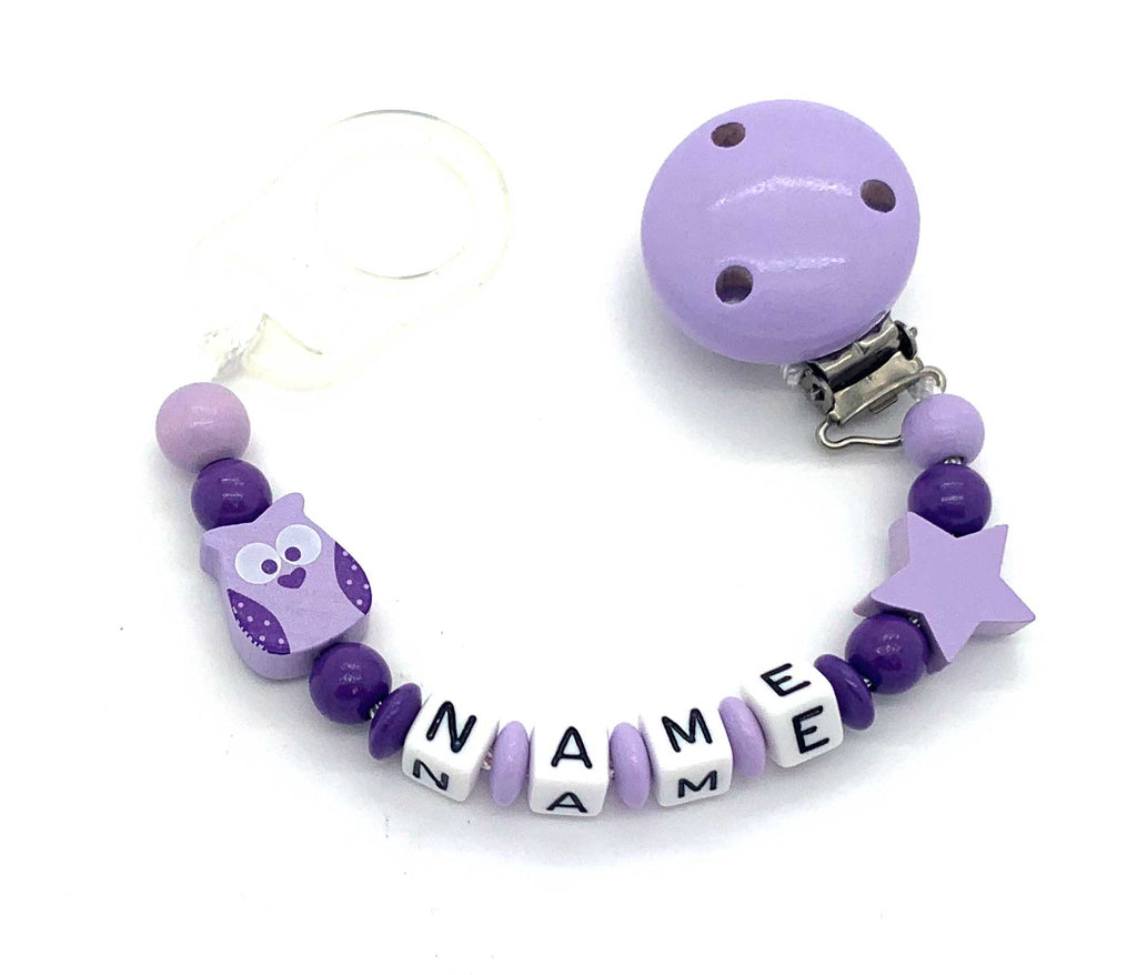 Die Schnullerkette mit der süßen kleinen Eule ist das perfekte Accessoire für die kleinen und mit dem Namen personalisiert ein echter Hingucker.