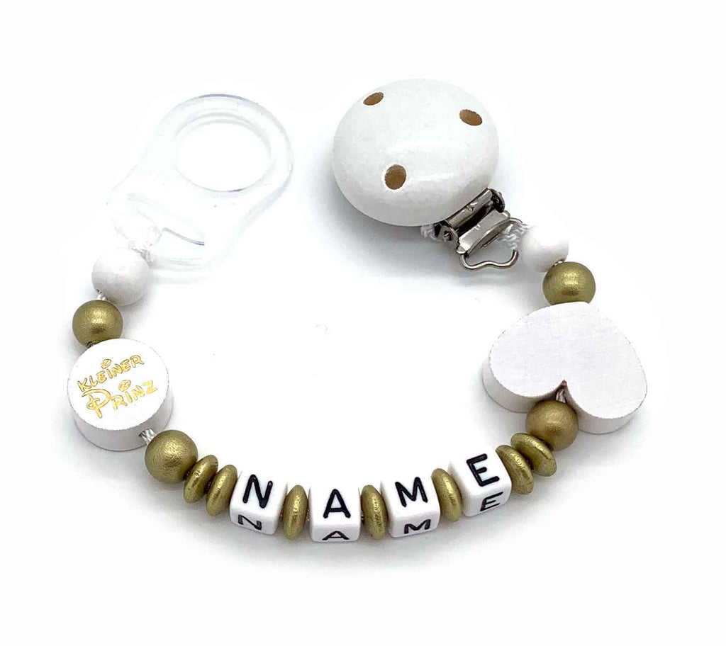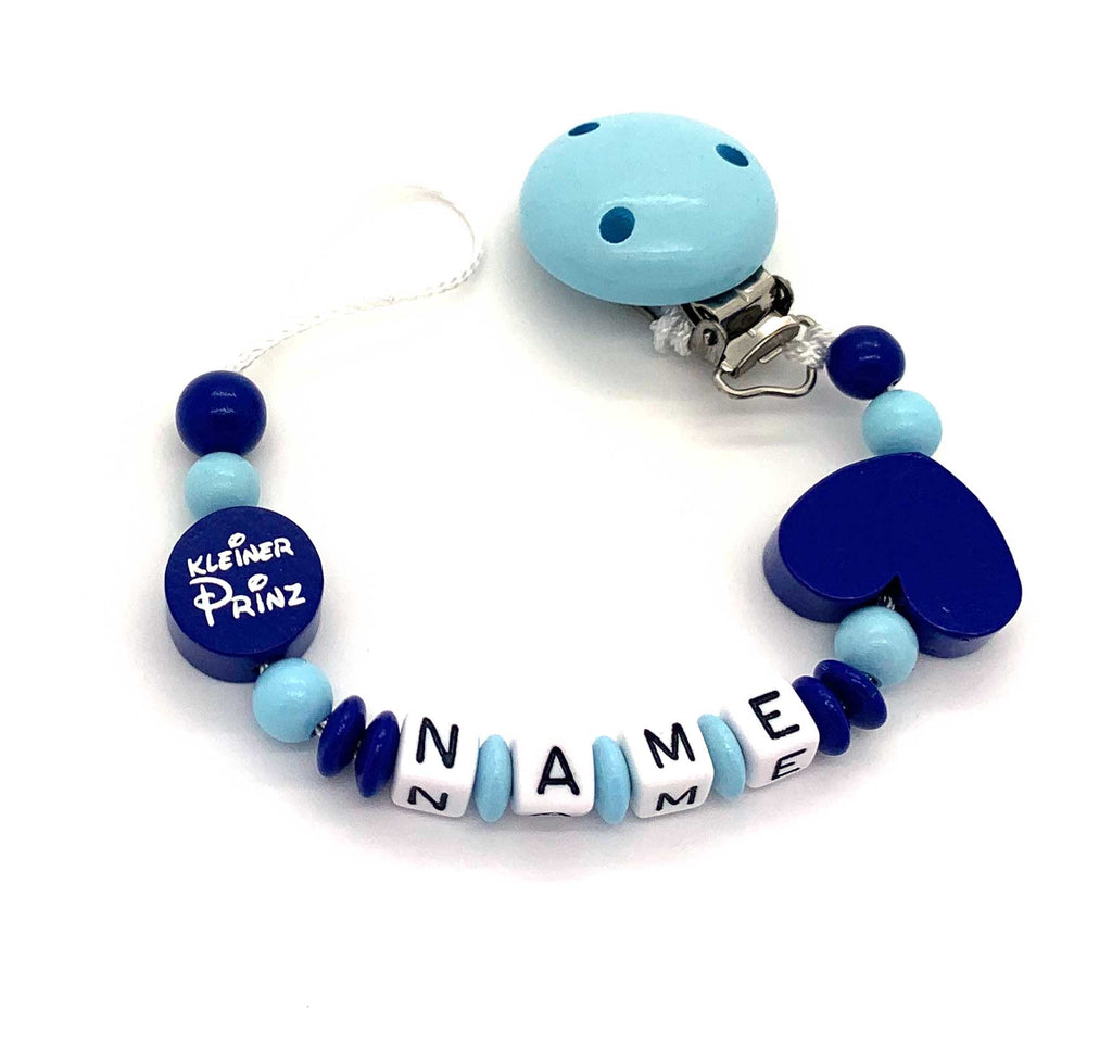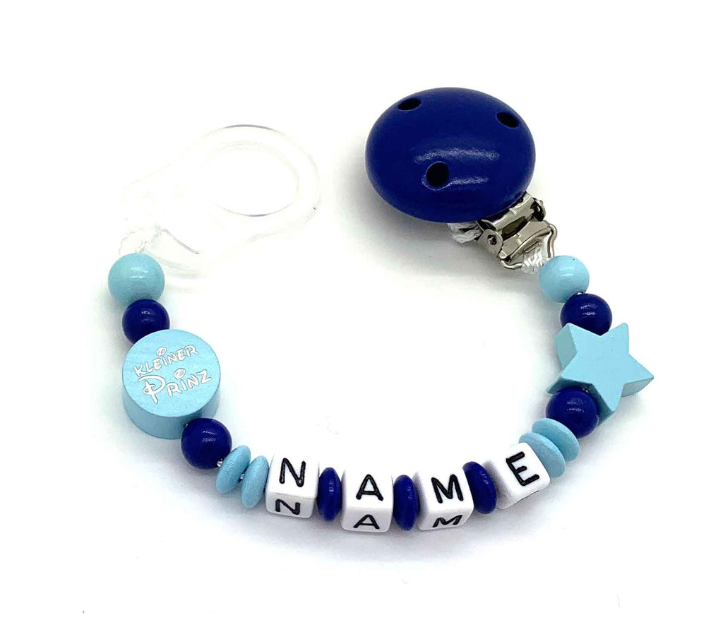 Alle kleinen Prinzen brauchen diese Schnullerkette mit Namen. Findet Eure Lieblingsfarbe.
