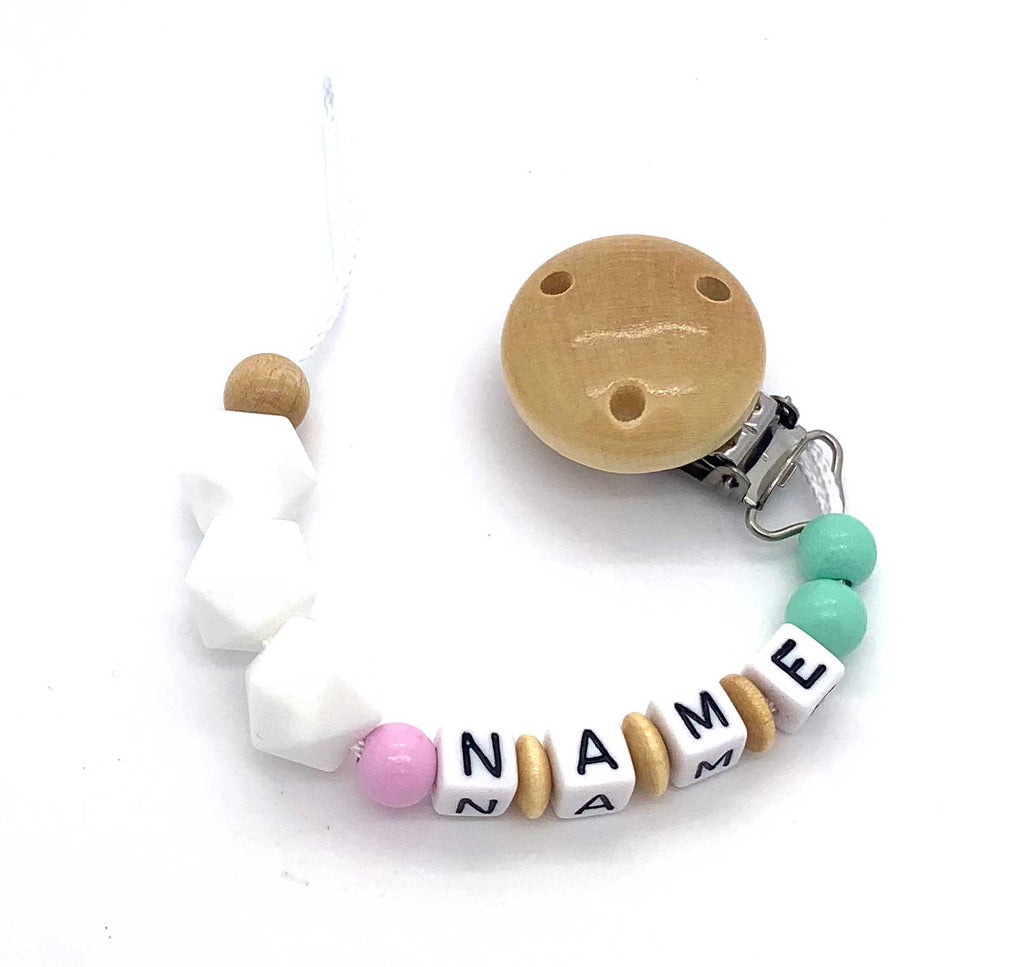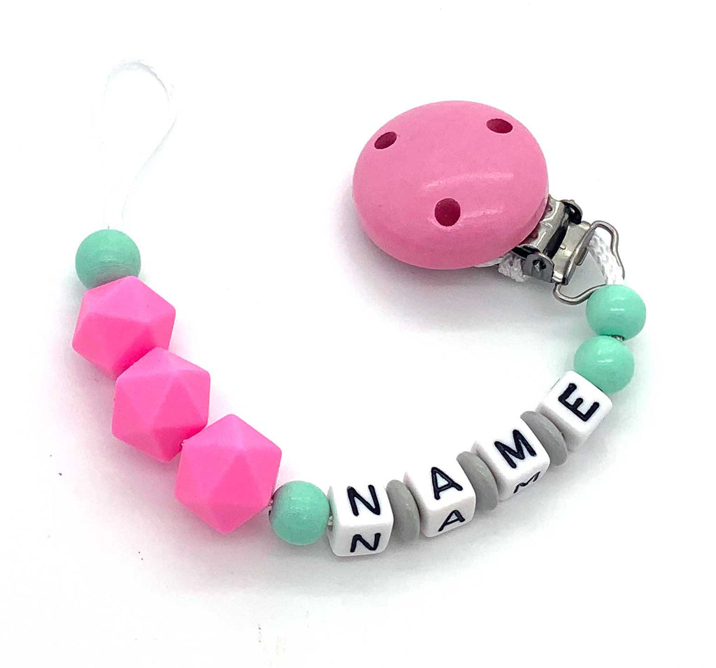Schnullerkette mit Namen - Silikonhexagon