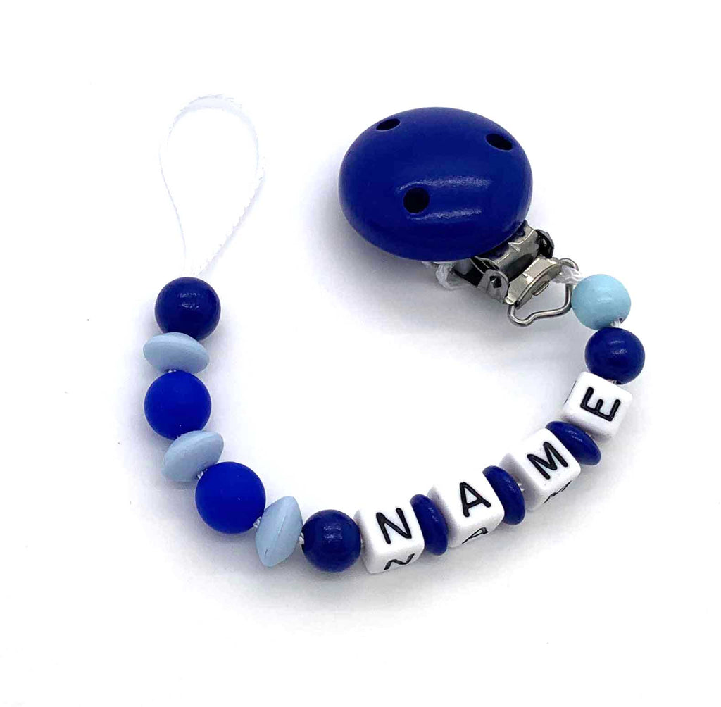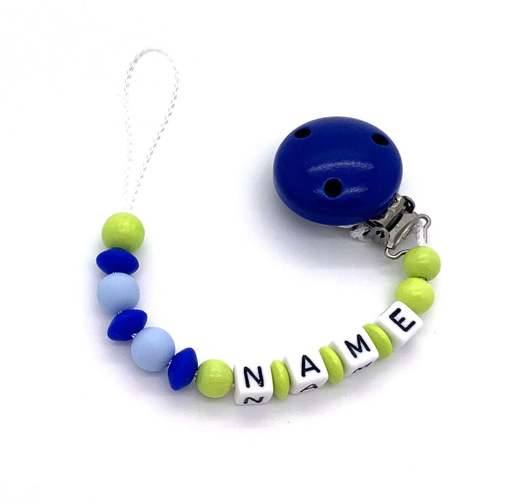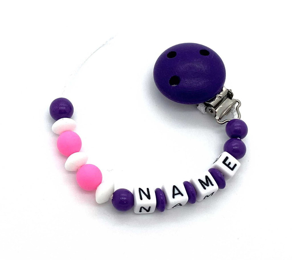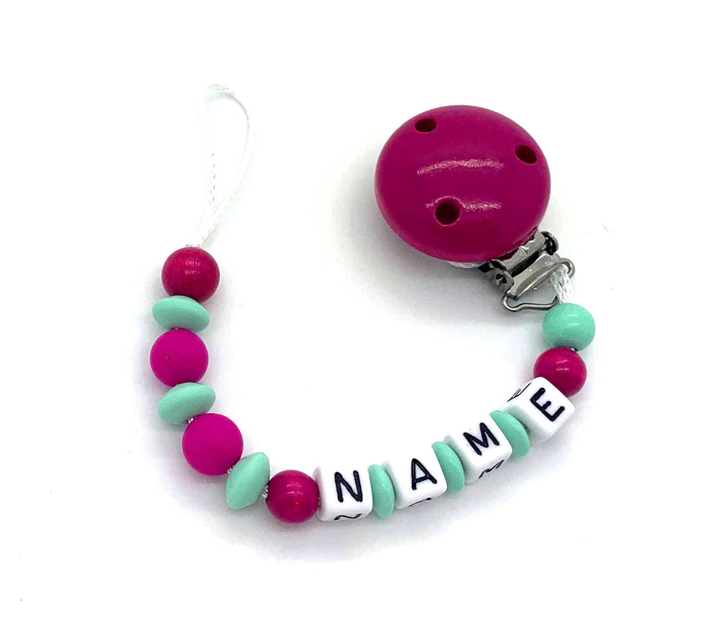 Schnullerkette mit Namen - Silikonperlen und Linsen